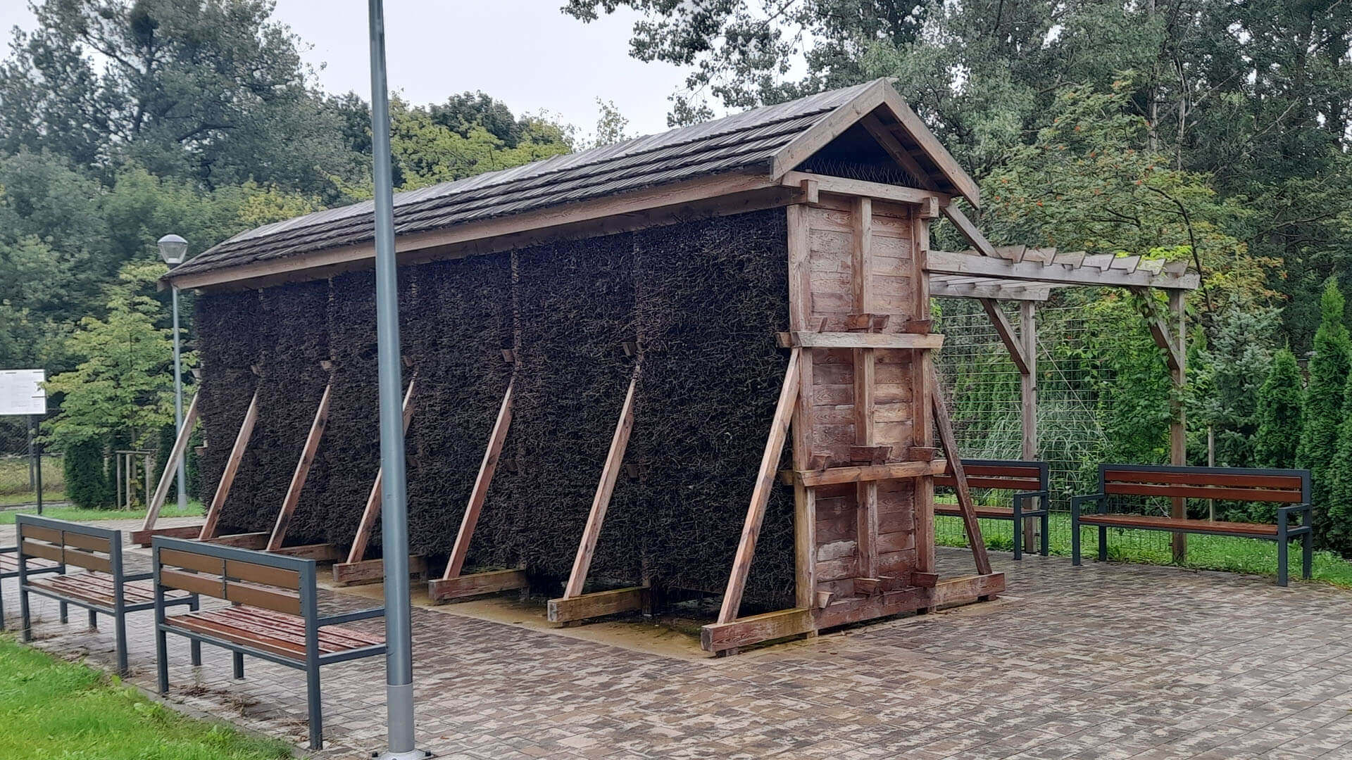 Wnętrze tężni wypełniamy starannie dobranymi gałęziami tarniny, które zapewniają maksymalną powierzchnię kontaktu solanki z powietrzem. Dzięki temu parowanie przebiega efektywnie, a powstający aerozol jest bogaty w mikroelementy. W dolnej części znajduje się zbiornik z solanką oraz pompa cyrkulacyjna, która utrzymuje nieprzerwany obieg wody. Całość uzupełniają systemy rur, zaworów i rozdzielaczy, a w razie potrzeby również automatyczne sterowanie, które ułatwia obsługę.